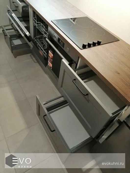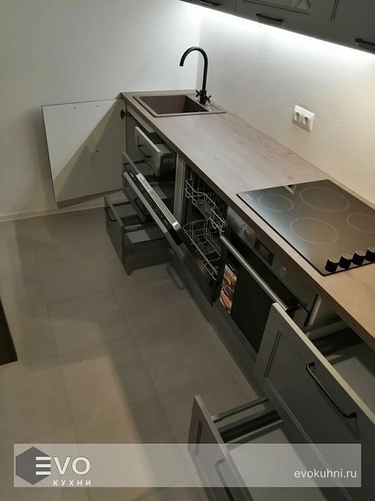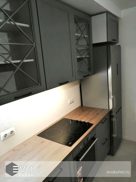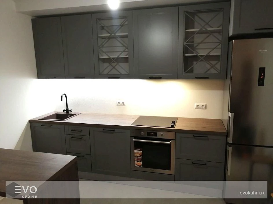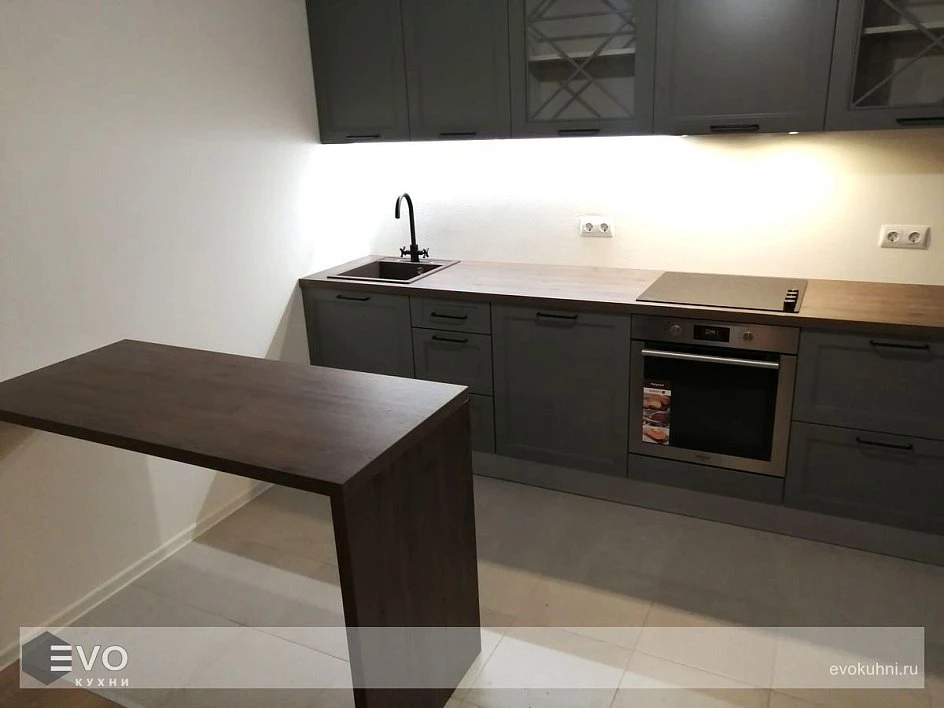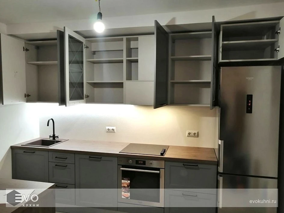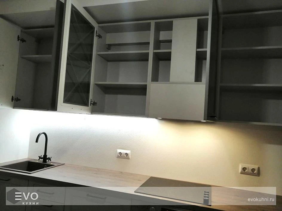 Кухни все изготавливаются по индивидуальному заказу. Мы подготовим дизайн-проект под любое помещение и конфигурацию. В зависимости от выбранных фасадов сможем изготовить нестандартные модули и размеры. Однако есть редкие исключения видов фасадов, по которым невозможны нестандарты, об этом вас предупредит дизайнер при выборе материалов для проекта.