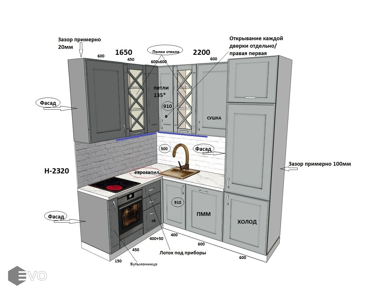 - Фартук: керамическая плитка клиента.