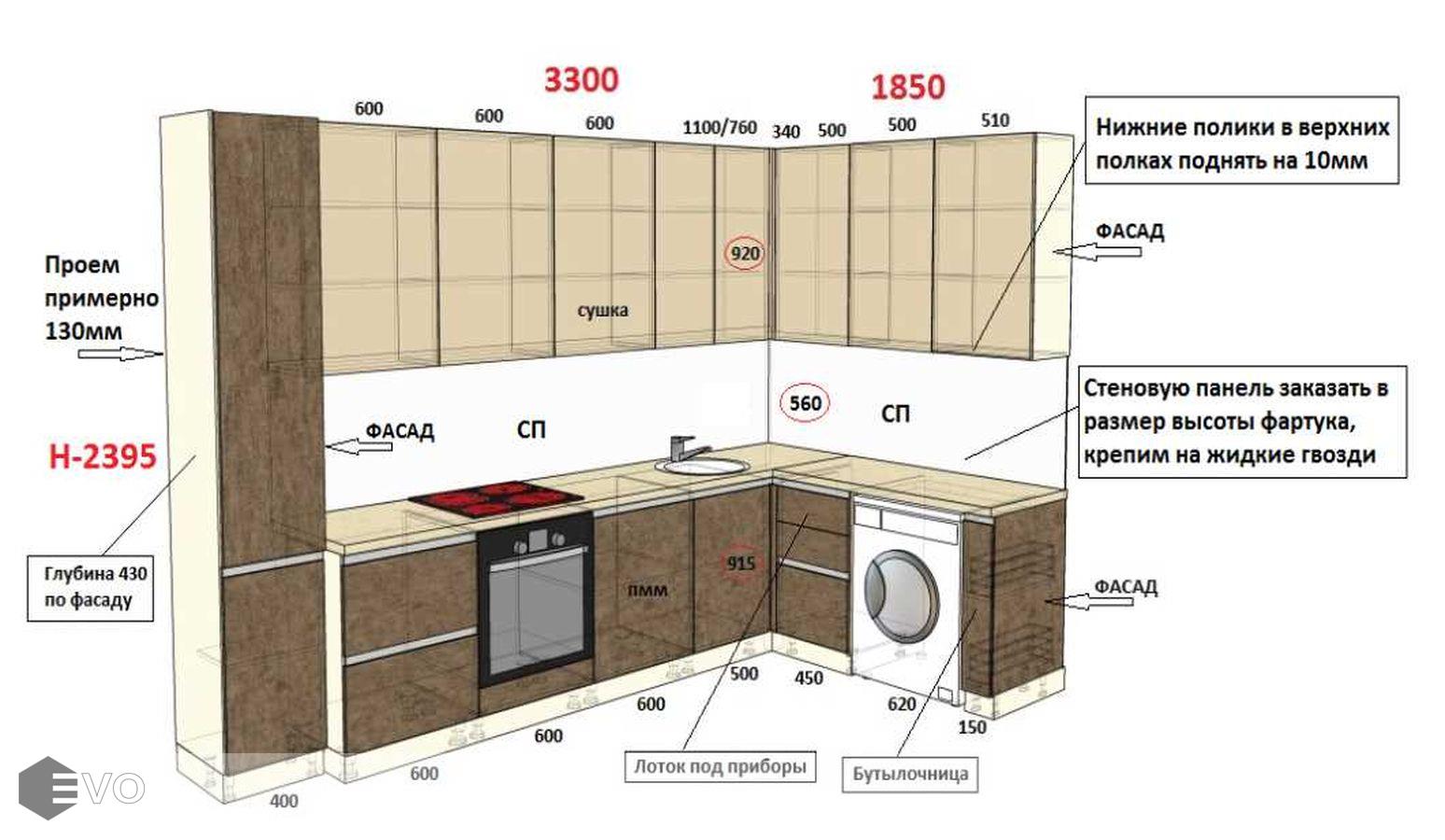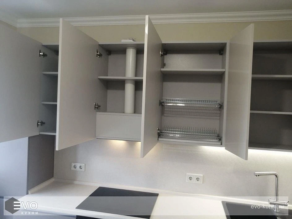 Кухни все изготавливаются по индивидуальному заказу. Мы подготовим дизайн-проект под любое помещение и конфигурацию. В зависимости от выбранных фасадов сможем изготовить нестандартные модули и размеры. Однако есть редкие исключения видов фасадов, по которым невозможны нестандарты, об этом вас предупредит дизайнер при выборе материалов для проекта.