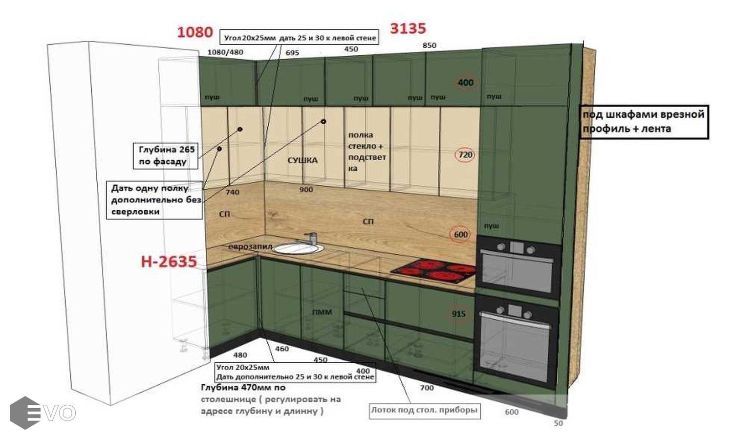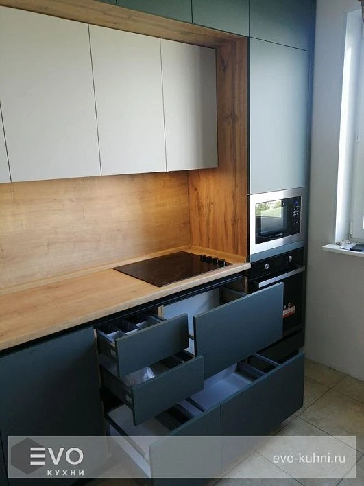 Кухни все изготавливаются по индивидуальному заказу. Мы подготовим дизайн-проект под любое помещение и конфигурацию. В зависимости от выбранных фасадов сможем изготовить нестандартные модули и размеры. Однако есть редкие исключения видов фасадов, по которым невозможны нестандарты, об этом вас предупредит дизайнер при выборе материалов для проекта.