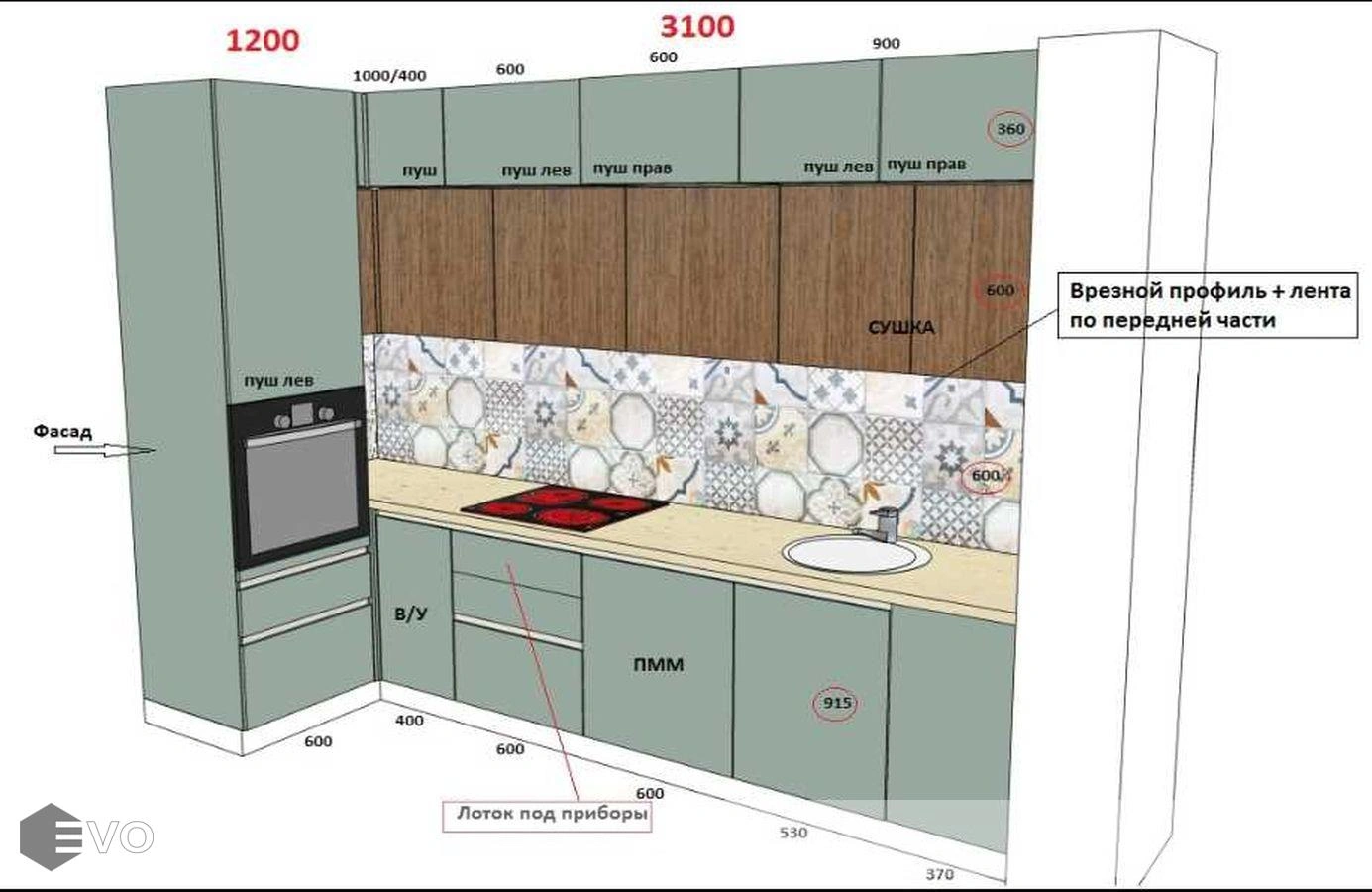 *в стоимость включено мебель, фурнитура, освещение, сушка, ручки Голо профиль, лоток под ст.приборы. Замер, доставка и сборка .