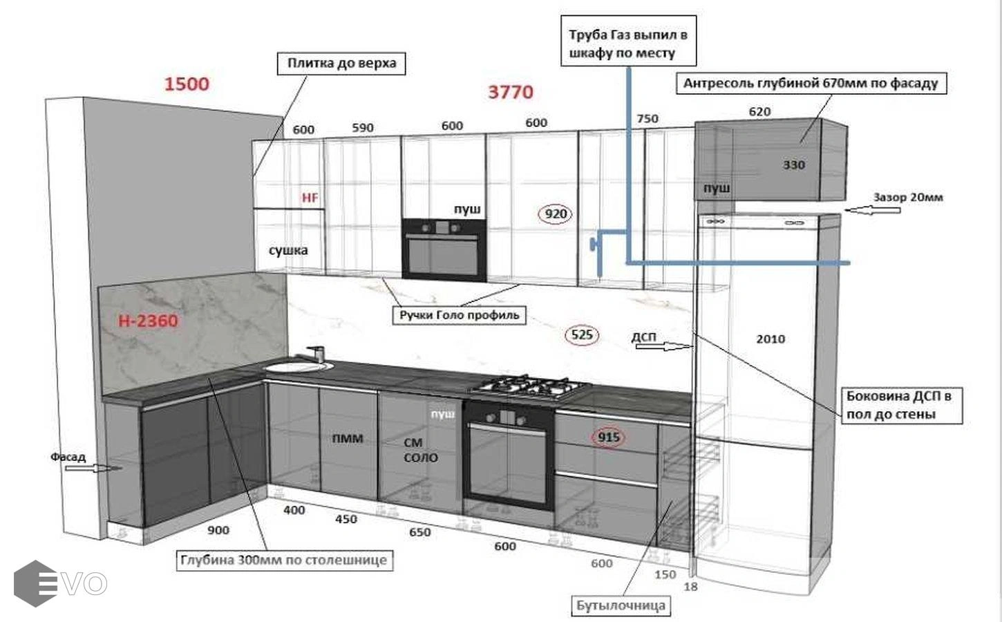 Дизайн-проект, максимально удовлетворяющий вашим пожеланиям, мы делаем бесплатно. Наши менеджеры-дизайнеры помогут вам определиться с моделью вашей будущей кухни, грамотно подберут встраиваемую технику, подберут цветовую гамму самой кухни исходя из стилистики интерьера и пожеланий клиента, составят технически грамотный проект под размеры помещения.