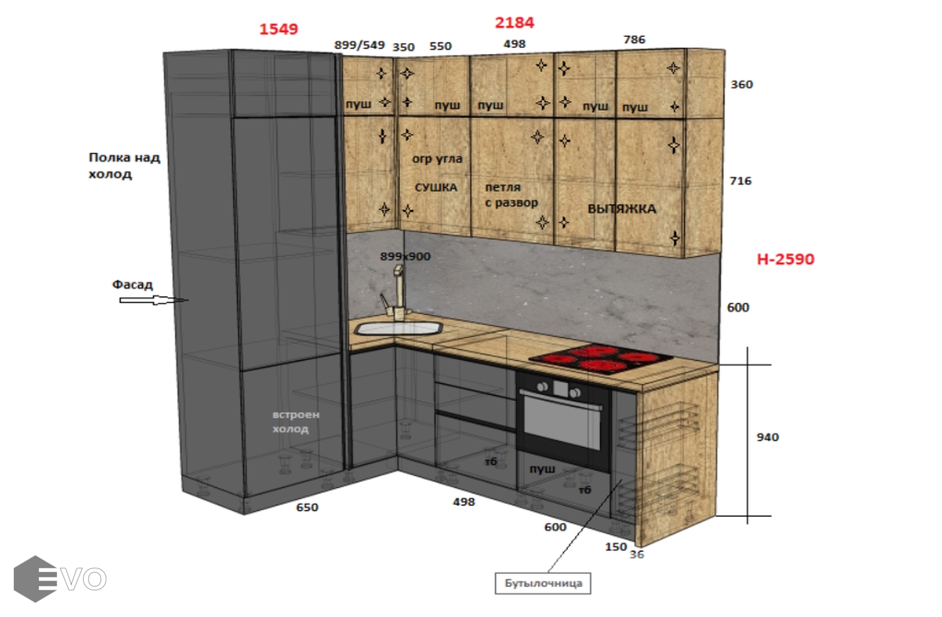 Кухни все изготавливаются по индивидуальному заказу. Мы подготовим дизайн-проект под любое помещение и конфигурацию. В зависимости от выбранных фасадов сможем изготовить нестандартные модули и размеры. Однако есть редкие исключения видов фасадов, по которым невозможны нестандарты, об этом вас предупредит дизайнер при выборе материалов для проекта.