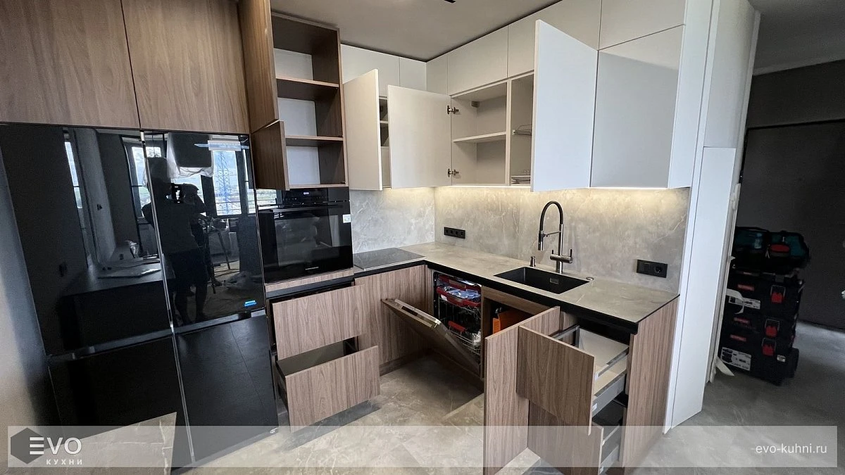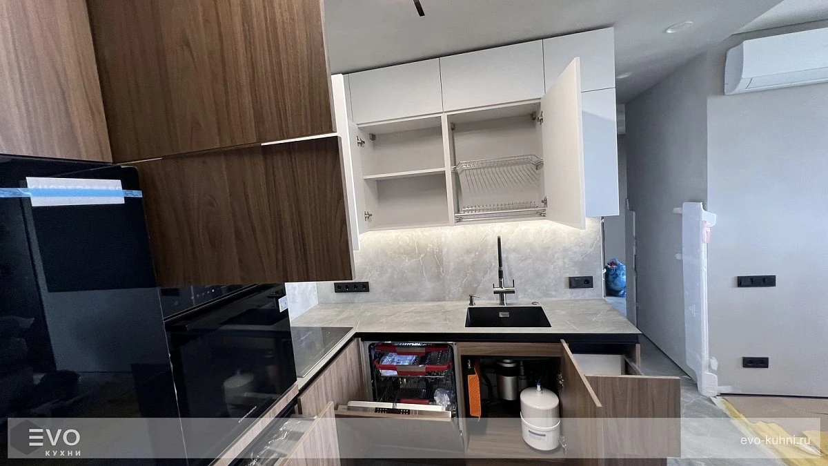 Кухни все изготавливаются по индивидуальному заказу. Мы подготовим дизайн-проект под любое помещение и конфигурацию. В зависимости от выбранных фасадов сможем изготовить нестандартные модули и размеры. Однако есть редкие исключения видов фасадов, по которым невозможны нестандарты, об этом вас предупредит дизайнер при выборе материалов для проекта.