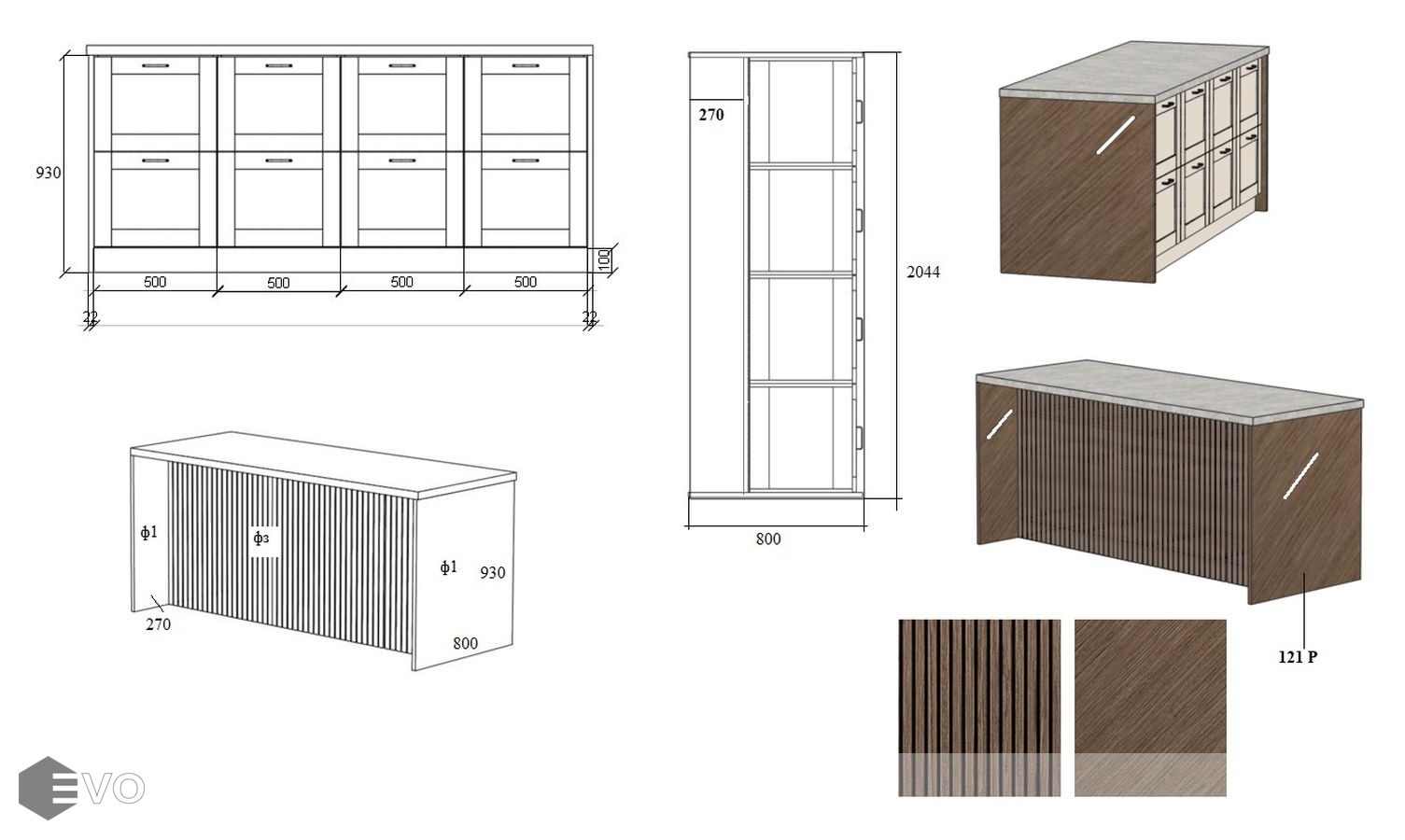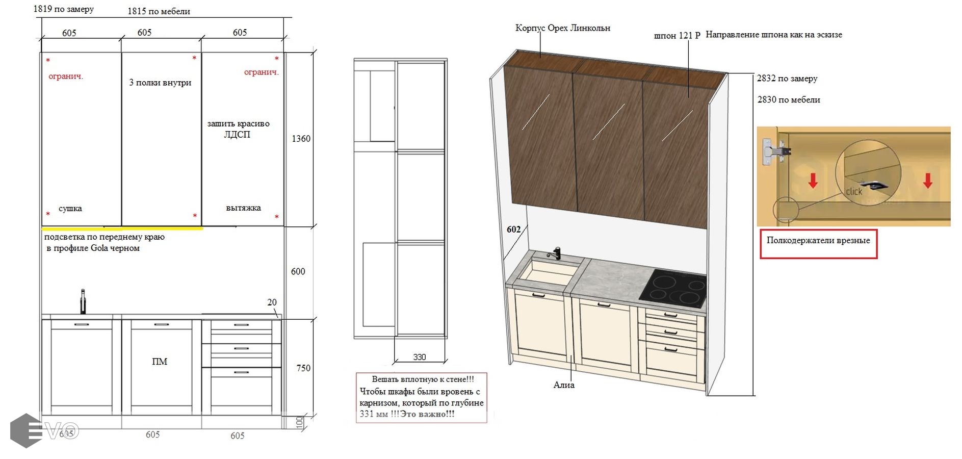 Дизайн-проект, максимально удовлетворяющий вашим пожеланиям, мы делаем бесплатно. Наши менеджеры-дизайнеры помогут вам определиться с моделью вашей будущей кухни, грамотно подберут встраиваемую технику, подберут цветовую гамму самой кухни исходя из стилистики интерьера и пожеланий клиента, составят технически грамотный проект под размеры помещения.