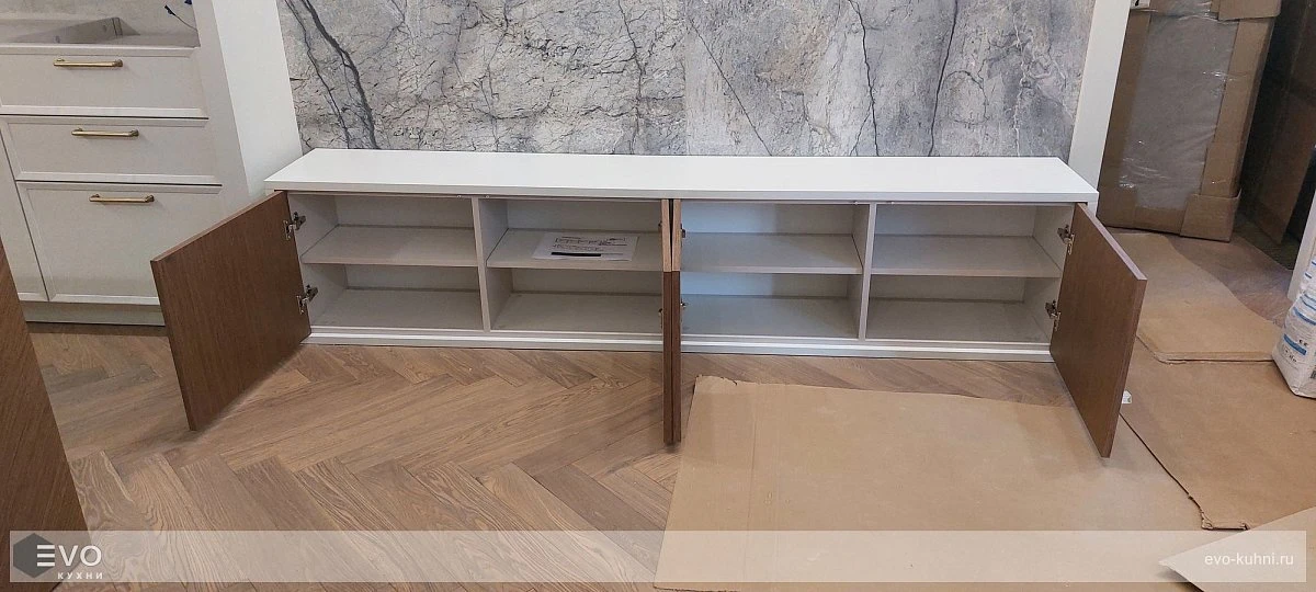Кухни все изготавливаются по индивидуальному заказу. Мы подготовим дизайн-проект под любое помещение и конфигурацию. В зависимости от выбранных фасадов сможем изготовить нестандартные модули и размеры. Однако есть редкие исключения видов фасадов, по которым невозможны нестандарты, об этом вас предупредит дизайнер при выборе материалов для проекта.