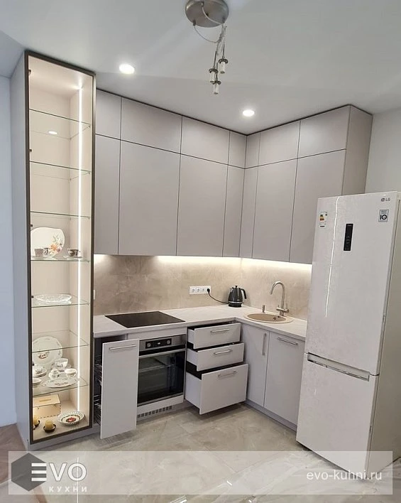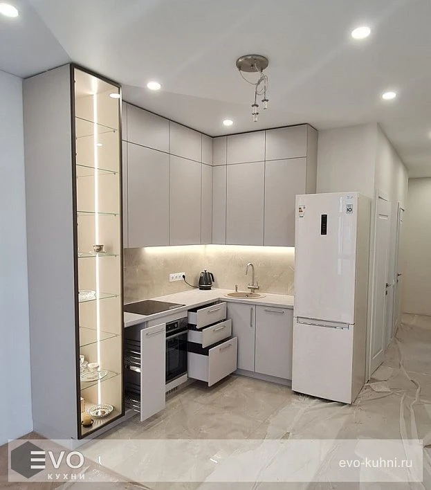Кухни все изготавливаются по индивидуальному заказу. Мы подготовим дизайн-проект под любое помещение и конфигурацию. В зависимости от выбранных фасадов сможем изготовить нестандартные модули и размеры. Однако есть редкие исключения видов фасадов, по которым невозможны нестандарты, об этом вас предупредит дизайнер при выборе материалов для проекта.