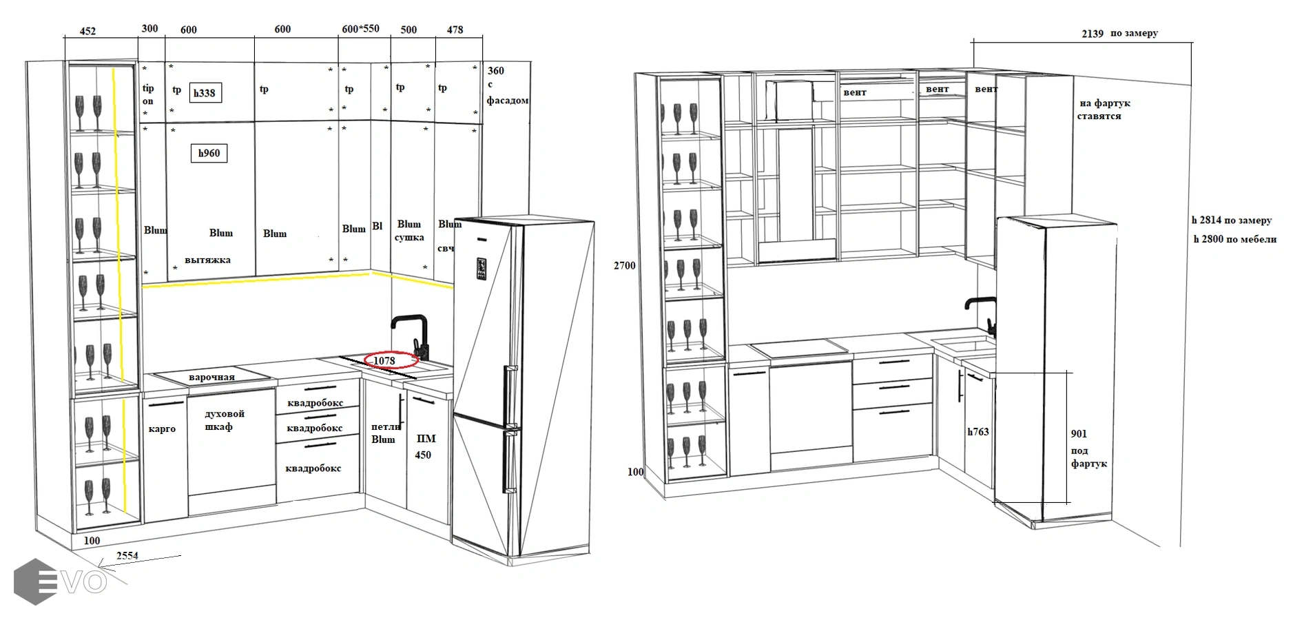 Дизайн-проект, максимально удовлетворяющий вашим пожеланиям, мы делаем бесплатно. Наши менеджеры-дизайнеры помогут вам определиться с моделью вашей будущей кухни, грамотно подберут встраиваемую технику, подберут цветовую гамму самой кухни исходя из стилистики интерьера и пожеланий клиента, составят технически грамотный проект под размеры помещения.