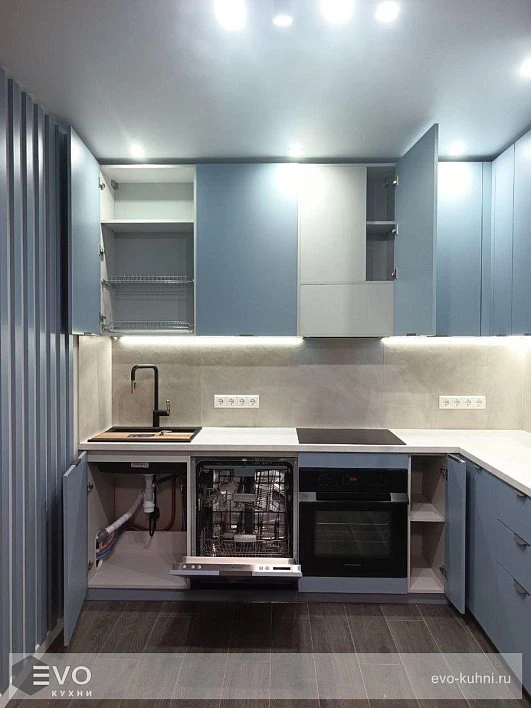 Кухни все изготавливаются по индивидуальному заказу. Мы подготовим дизайн-проект под любое помещение и конфигурацию. В зависимости от выбранных фасадов сможем изготовить нестандартные модули и размеры. Однако есть редкие исключения видов фасадов, по которым невозможны нестандарты, об этом вас предупредит дизайнер при выборе материалов для проекта.