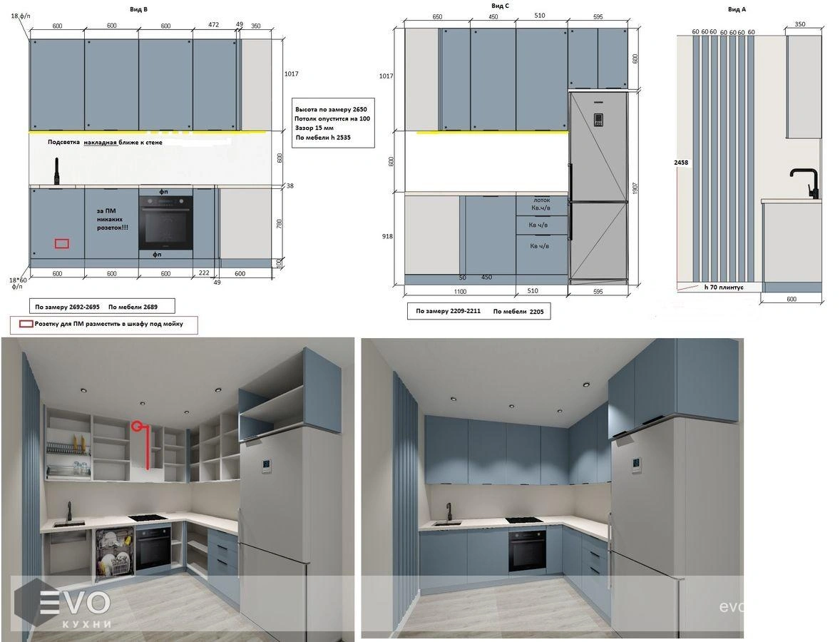 Дизайн-проект, максимально удовлетворяющий вашим пожеланиям, мы делаем бесплатно. Наши менеджеры-дизайнеры помогут вам определиться с моделью вашей будущей кухни, грамотно подберут встраиваемую технику, подберут цветовую гамму самой кухни исходя из стилистики интерьера и пожеланий клиента, составят технически грамотный проект под размеры помещения.
