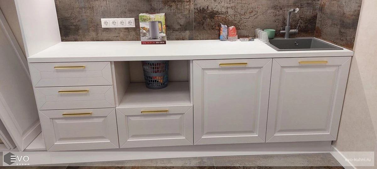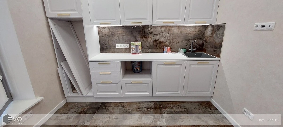 Кухни все изготавливаются по индивидуальному заказу. Мы подготовим дизайн-проект под любое помещение и конфигурацию. В зависимости от выбранных фасадов сможем изготовить нестандартные модули и размеры. Однако есть редкие исключения видов фасадов, по которым невозможны нестандарты, об этом вас предупредит дизайнер при выборе материалов для проекта.