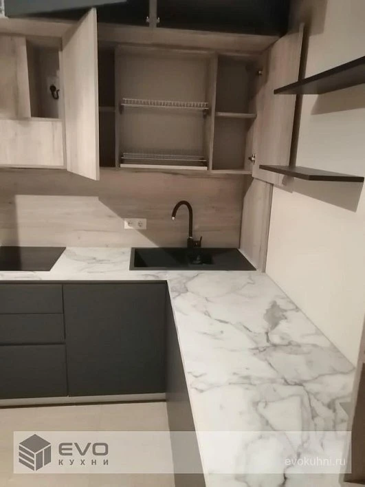 Кухни все изготавливаются по индивидуальному заказу. Мы подготовим дизайн-проект под любое помещение и конфигурацию. В зависимости от выбранных фасадов сможем изготовить нестандартные модули и размеры. Однако есть редкие исключения видов фасадов, по которым невозможны нестандарты, об этом вас предупредит дизайнер при выборе материалов для проекта.