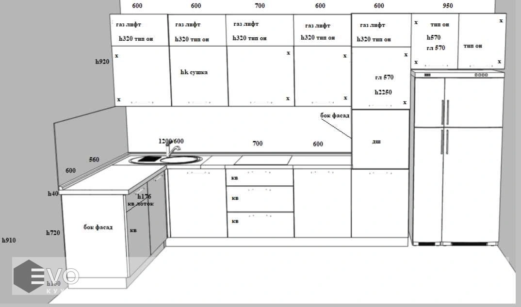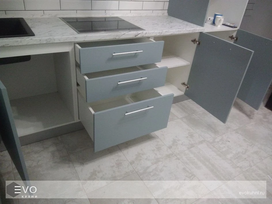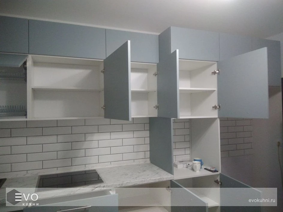Кухни все изготавливаются по индивидуальному заказу. Мы подготовим дизайн-проект под любое помещение и конфигурацию. В зависимости от выбранных фасадов сможем изготовить нестандартные модули и размеры. Однако есть редкие исключения видов фасадов, по которым невозможны нестандарты, об этом вас предупредит дизайнер при выборе материалов для проекта.