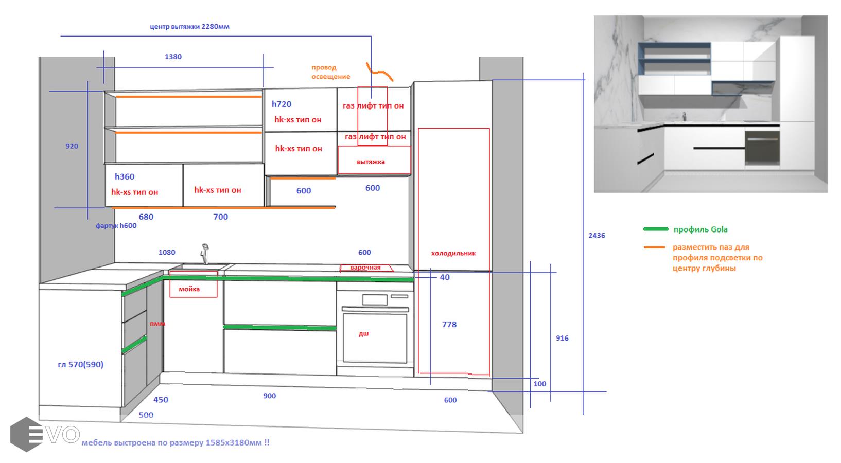 Дизайн-проект, максимально удовлетворяющий вашим пожеланиям, мы делаем бесплатно. Наши менеджеры-дизайнеры помогут вам определиться с моделью вашей будущей кухни, грамотно подберут встраиваемую технику, подберут цветовую гамму самой кухни исходя из стилистики интерьера и пожеланий клиента, составят технически грамотный проект под размеры помещения.