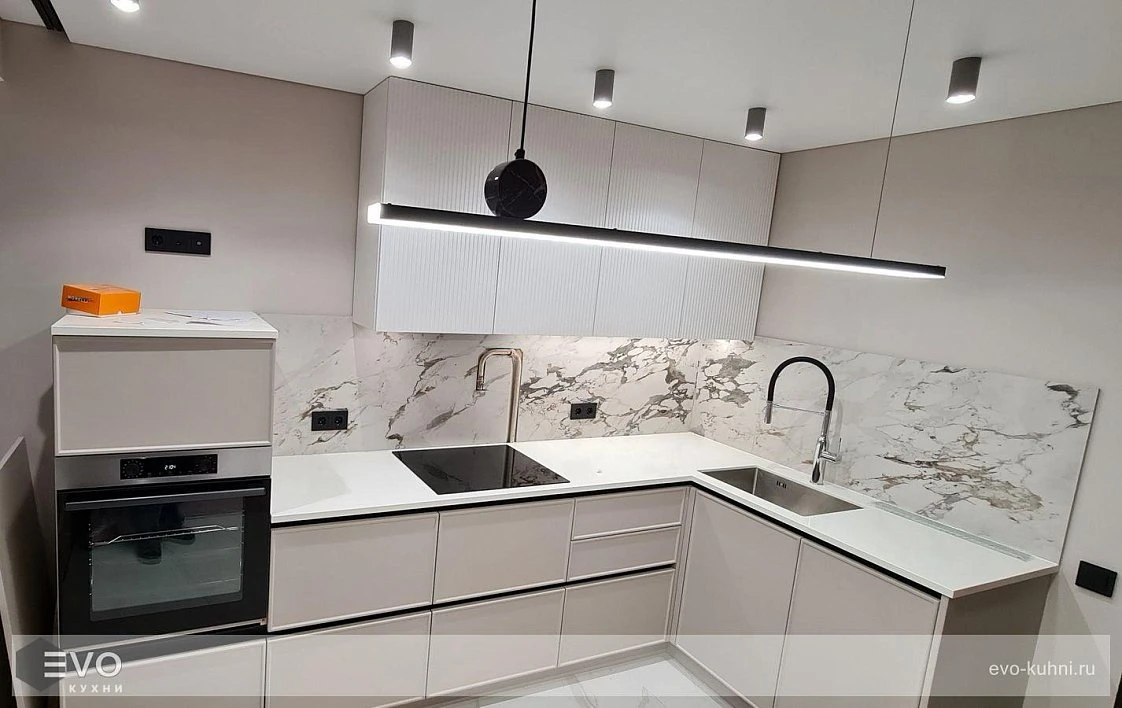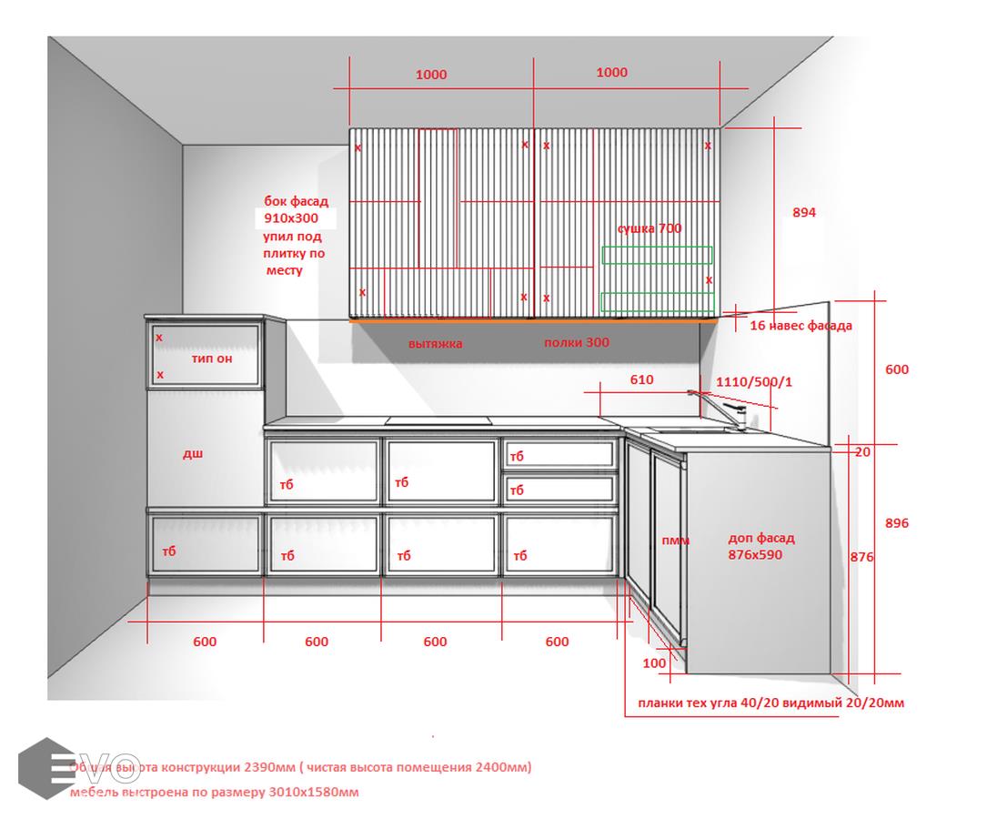 Кухни все изготавливаются по индивидуальному заказу. Мы подготовим дизайн-проект под любое помещение и конфигурацию. В зависимости от выбранных фасадов сможем изготовить нестандартные модули и размеры. Однако есть редкие исключения видов фасадов, по которым невозможны нестандарты, об этом вас предупредит дизайнер при выборе материалов для проекта.