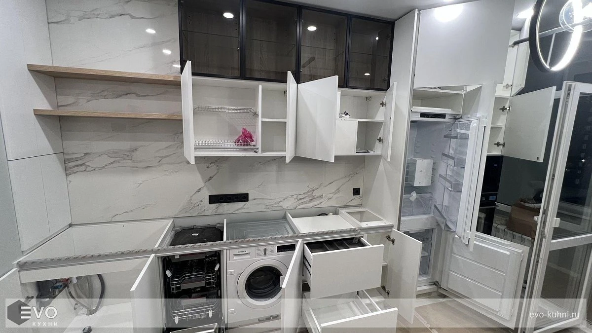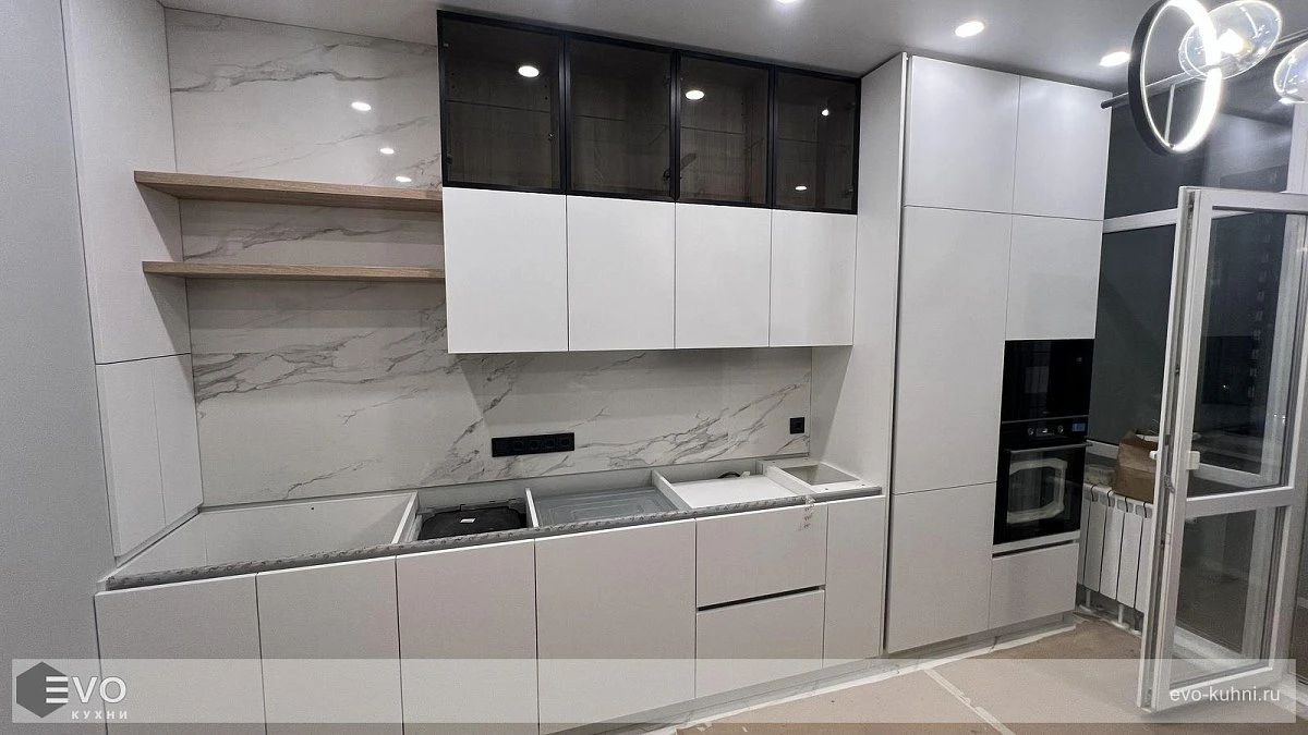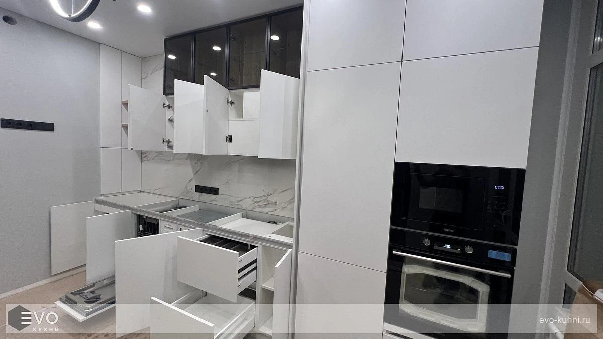 Кухни все изготавливаются по индивидуальному заказу. Мы подготовим дизайн-проект под любое помещение и конфигурацию. В зависимости от выбранных фасадов сможем изготовить нестандартные модули и размеры. Однако есть редкие исключения видов фасадов, по которым невозможны нестандарты, об этом вас предупредит дизайнер при выборе материалов для проекта.