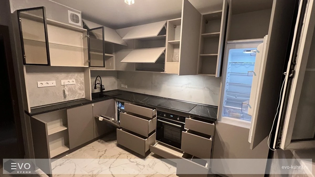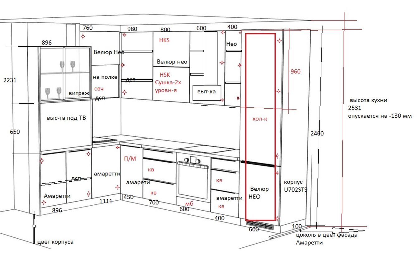 Кухни все изготавливаются по индивидуальному заказу. Мы подготовим дизайн-проект под любое помещение и конфигурацию. В зависимости от выбранных фасадов сможем изготовить нестандартные модули и размеры. Однако есть редкие исключения видов фасадов, по которым невозможны нестандарты, об этом вас предупредит дизайнер при выборе материалов для проекта.