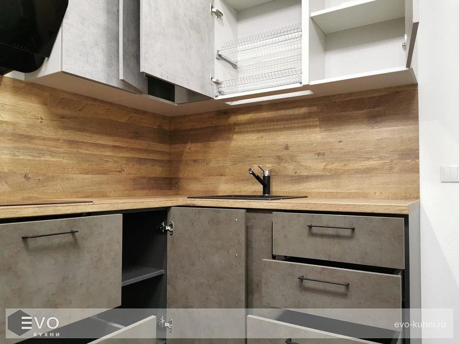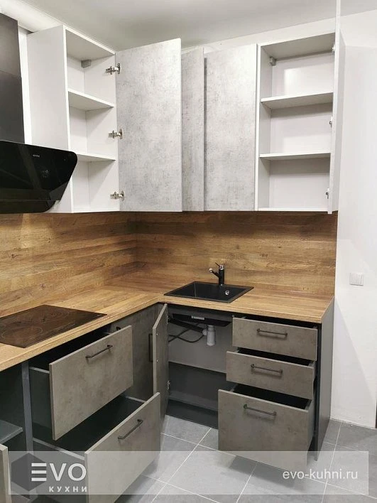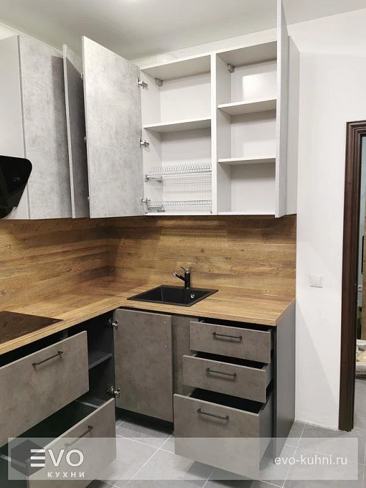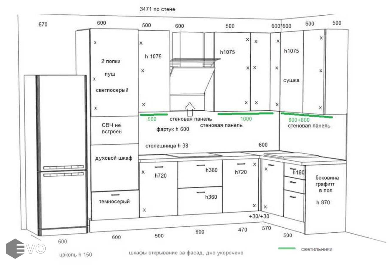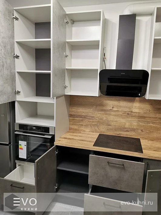 Кухни все изготавливаются по индивидуальному заказу. Мы подготовим дизайн-проект под любое помещение и конфигурацию. В зависимости от выбранных фасадов сможем изготовить нестандартные модули и размеры. Однако есть редкие исключения видов фасадов, по которым невозможны нестандарты, об этом вас предупредит дизайнер при выборе материалов для проекта.