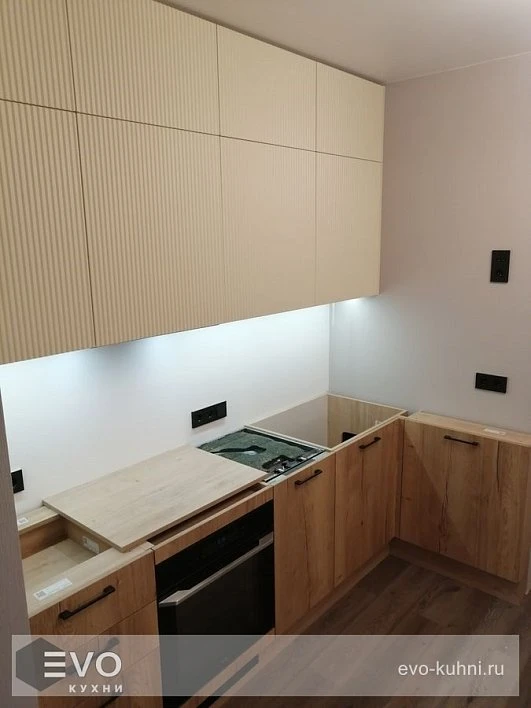 Кухни все изготавливаются по индивидуальному заказу. Мы подготовим дизайн-проект под любое помещение и конфигурацию. В зависимости от выбранных фасадов сможем изготовить нестандартные модули и размеры. Однако есть редкие исключения видов фасадов, по которым невозможны нестандарты, об этом вас предупредит дизайнер при выборе материалов для проекта.
