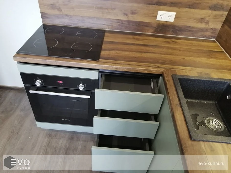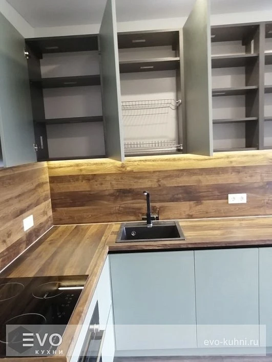 Кухни все изготавливаются по индивидуальному заказу. Мы подготовим дизайн-проект под любое помещение и конфигурацию. В зависимости от выбранных фасадов сможем изготовить нестандартные модули и размеры. Однако есть редкие исключения видов фасадов, по которым невозможны нестандарты, об этом вас предупредит дизайнер при выборе материалов для проекта.