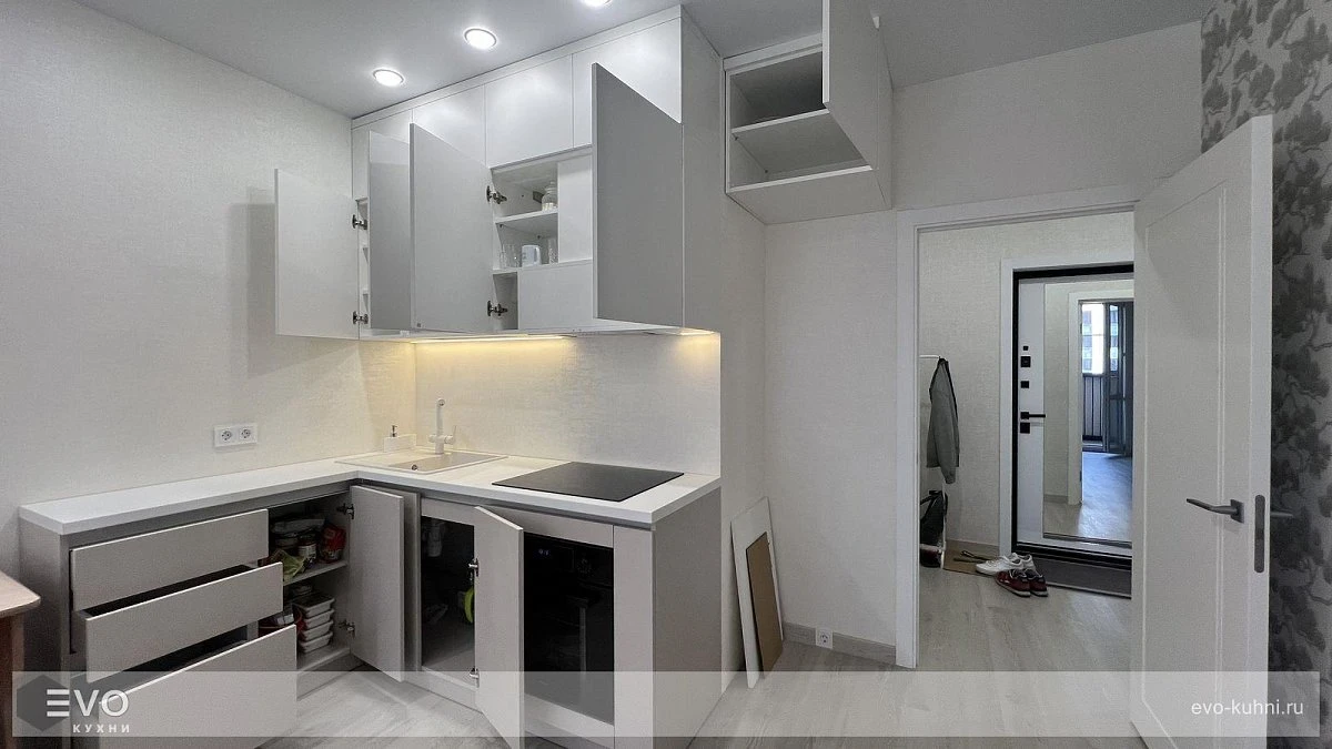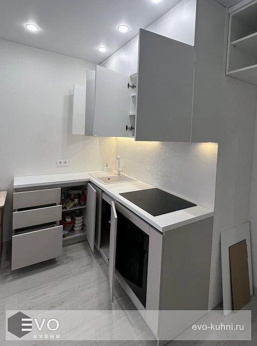 Кухни все изготавливаются по индивидуальному заказу. Мы подготовим дизайн-проект под любое помещение и конфигурацию. В зависимости от выбранных фасадов сможем изготовить нестандартные модули и размеры. Однако есть редкие исключения видов фасадов, по которым невозможны нестандарты, об этом вас предупредит дизайнер при выборе материалов для проекта.