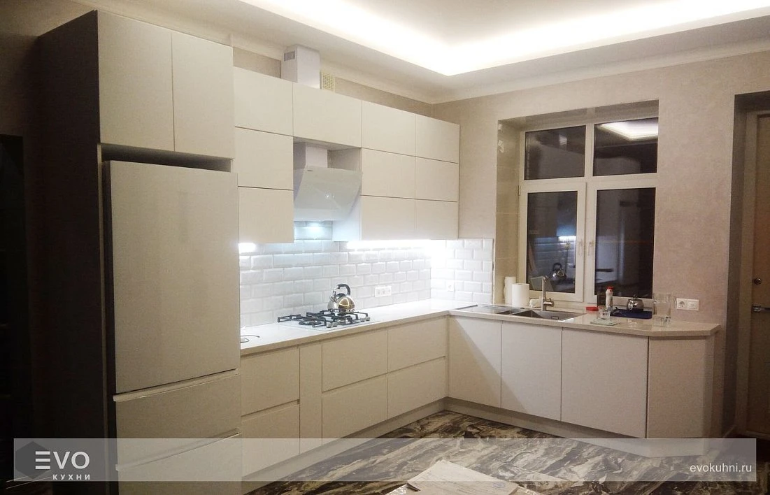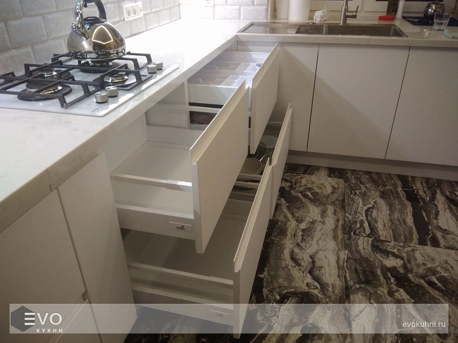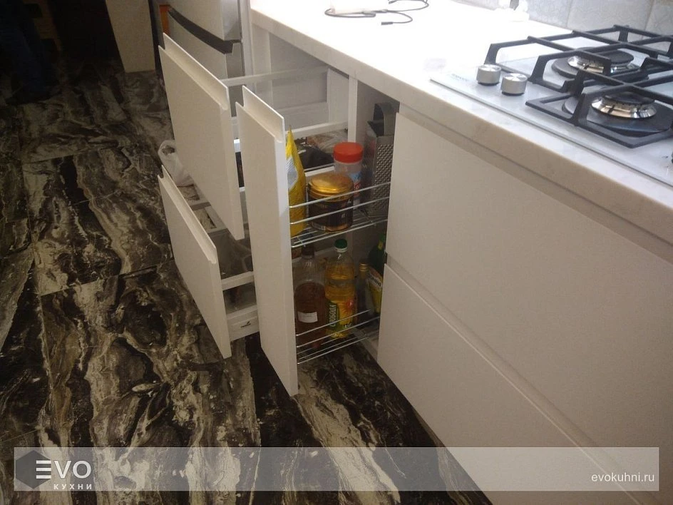 Кухни все изготавливаются по индивидуальному заказу. Мы подготовим дизайн-проект под любое помещение и конфигурацию. В зависимости от выбранных фасадов сможем изготовить нестандартные модули и размеры. Однако есть редкие исключения видов фасадов, по которым невозможны нестандарты, об этом вас предупредит дизайнер при выборе материалов для проекта.