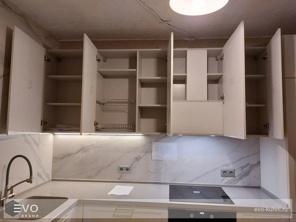 Кухни все изготавливаются по индивидуальному заказу. Мы подготовим дизайн-проект под любое помещение и конфигурацию. В зависимости от выбранных фасадов сможем изготовить нестандартные модули и размеры. Однако есть редкие исключения видов фасадов, по которым невозможны нестандарты, об этом вас предупредит дизайнер при выборе материалов для проекта.