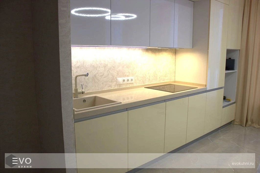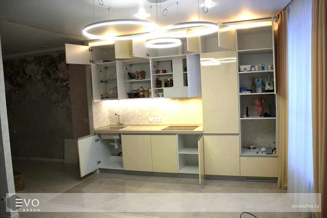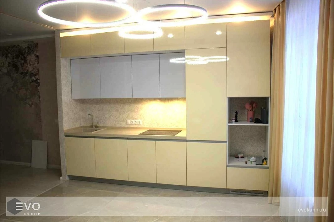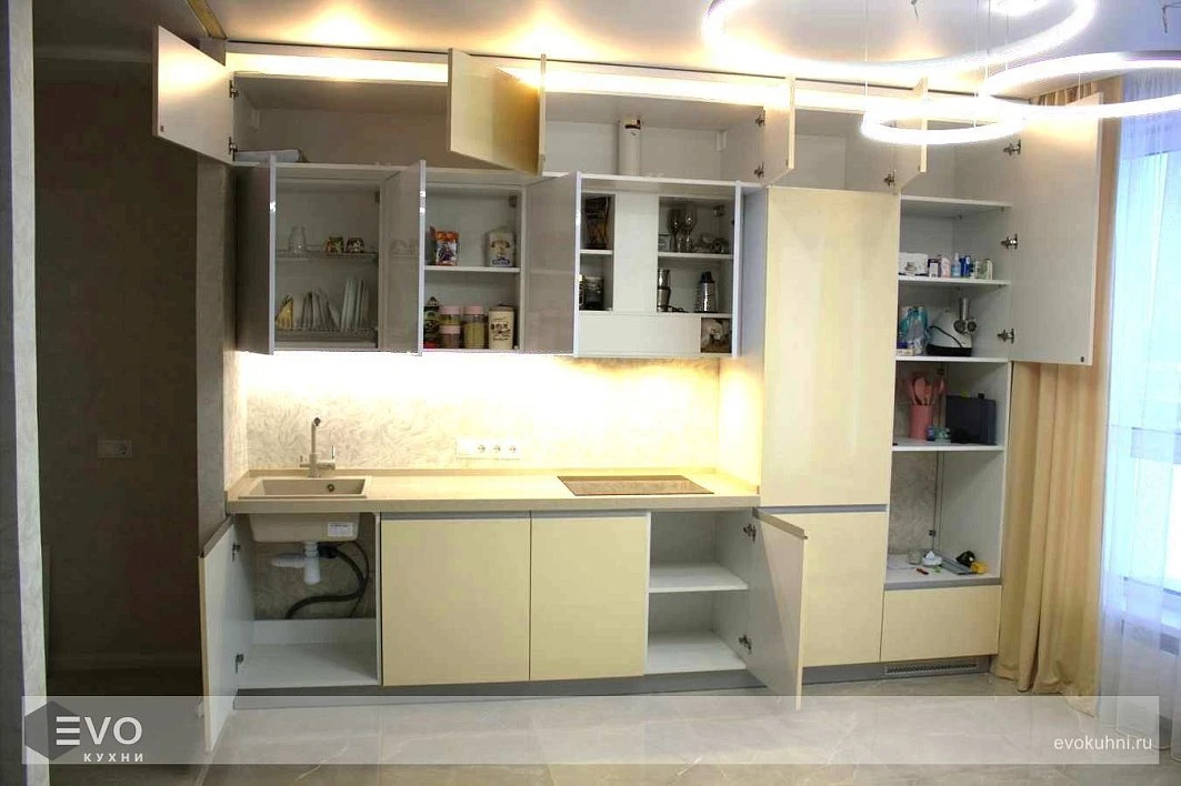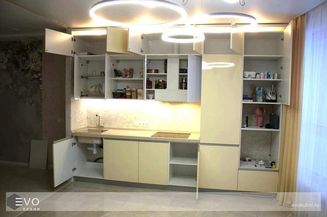Кухни все изготавливаются по индивидуальному заказу. Мы подготовим дизайн-проект под любое помещение и конфигурацию. В зависимости от выбранных фасадов сможем изготовить нестандартные модули и размеры. Однако есть редкие исключения видов фасадов, по которым невозможны нестандарты, об этом вас предупредит дизайнер при выборе материалов для проекта.