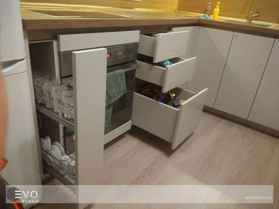 Кухни все изготавливаются по индивидуальному заказу. Мы подготовим дизайн-проект под любое помещение и конфигурацию. В зависимости от выбранных фасадов сможем изготовить нестандартные модули и размеры. Однако есть редкие исключения видов фасадов, по которым невозможны нестандарты, об этом вас предупредит дизайнер при выборе материалов для проекта.