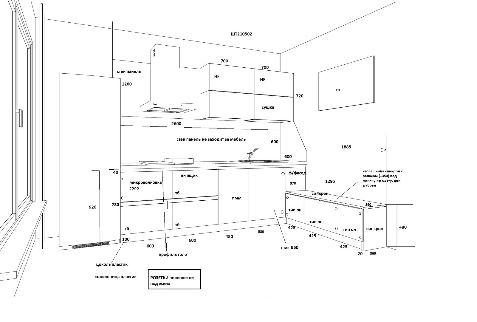 *в стоимость включено мебель, столешница, стеновая панель, фурнитура, мойка, смеситель, фильтры для очистки воды, вытяжка, варочная панель, сушка, ручки Голо профиль. Замер, доставка и сборка .
