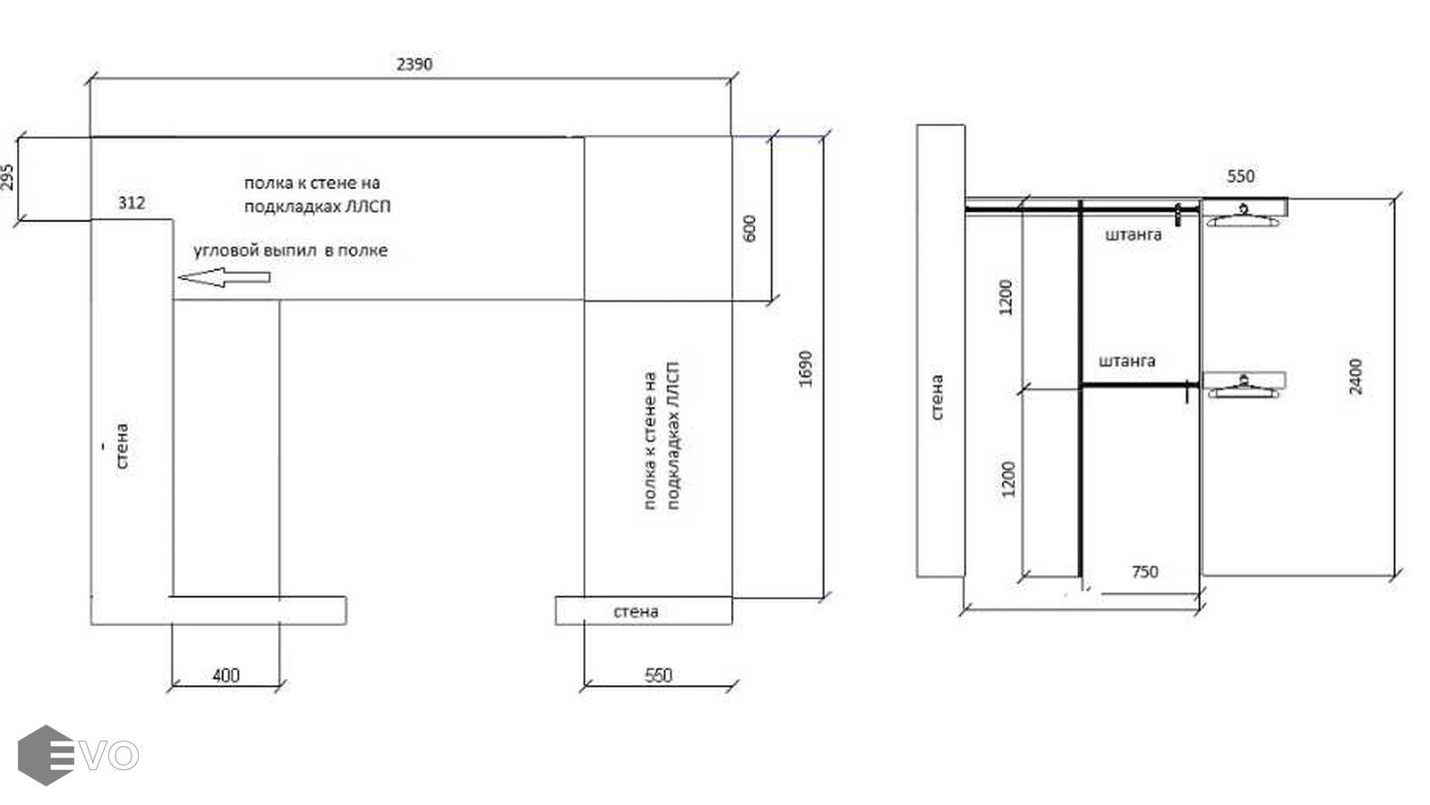 Гардеробная и тумба РТ230203