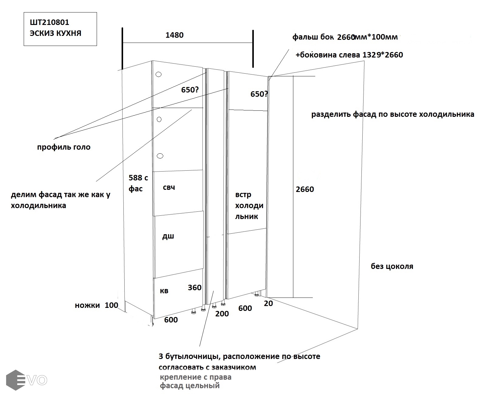 Кухни все изготавливаются по индивидуальному заказу. Мы подготовим дизайн-проект под любое помещение и конфигурацию. В зависимости от выбранных фасадов сможем изготовить нестандартные модули и размеры. Однако есть редкие исключения видов фасадов, по которым невозможны нестандарты, об этом вас предупредит дизайнер при выборе материалов для проекта.