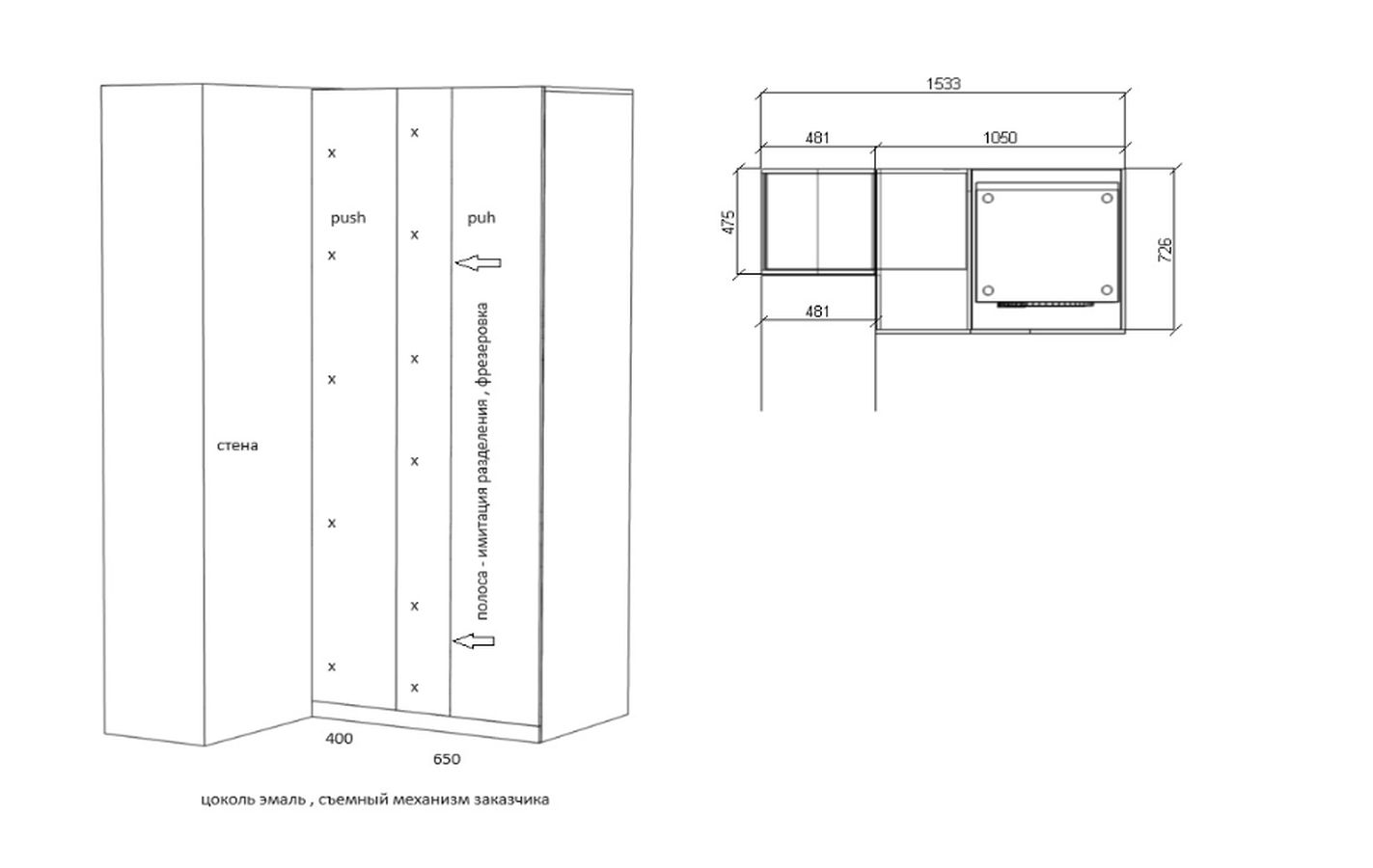 Кухни все изготавливаются по индивидуальному заказу. Мы подготовим дизайн-проект под любое помещение и конфигурацию. В зависимости от выбранных фасадов сможем изготовить нестандартные модули и размеры. Однако есть редкие исключения видов фасадов, по которым невозможны нестандарты, об этом вас предупредит дизайнер при выборе материалов для проекта.