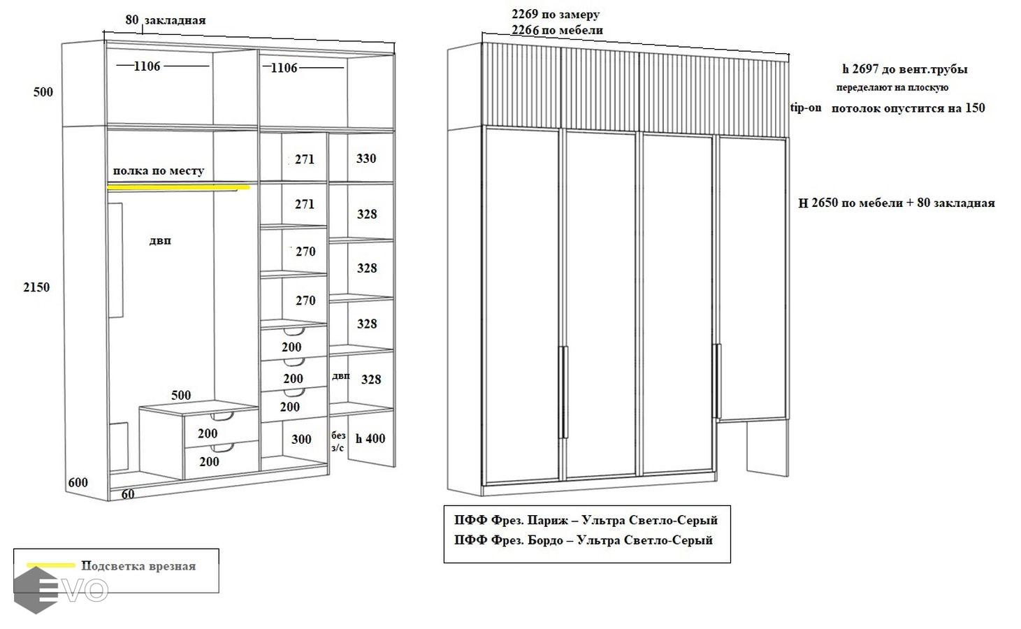 Кухни все изготавливаются по индивидуальному заказу. Мы подготовим дизайн-проект под любое помещение и конфигурацию. В зависимости от выбранных фасадов сможем изготовить нестандартные модули и размеры. Однако есть редкие исключения видов фасадов, по которым невозможны нестандарты, об этом вас предупредит дизайнер при выборе материалов для проекта.