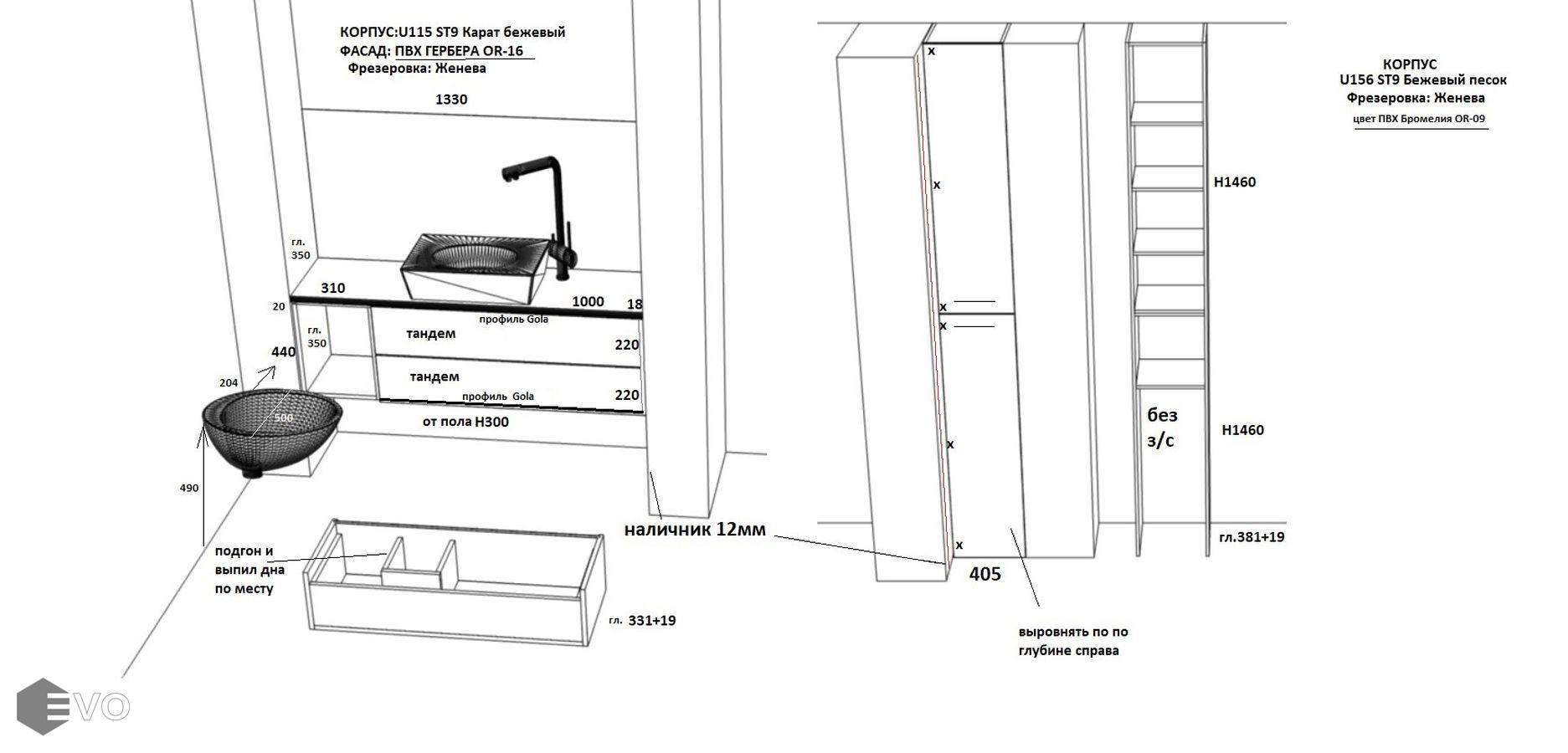 Кухни все изготавливаются по индивидуальному заказу. Мы подготовим дизайн-проект под любое помещение и конфигурацию. В зависимости от выбранных фасадов сможем изготовить нестандартные модули и размеры. Однако есть редкие исключения видов фасадов, по которым невозможны нестандарты, об этом вас предупредит дизайнер при выборе материалов для проекта.