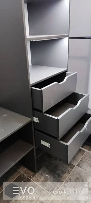 Кухни все изготавливаются по индивидуальному заказу. Мы подготовим дизайн-проект под любое помещение и конфигурацию. В зависимости от выбранных фасадов сможем изготовить нестандартные модули и размеры. Однако есть редкие исключения видов фасадов, по которым невозможны нестандарты, об этом вас предупредит дизайнер при выборе материалов для проекта.