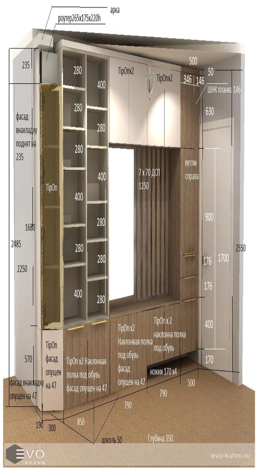 Кухни все изготавливаются по индивидуальному заказу. Мы подготовим дизайн-проект под любое помещение и конфигурацию. В зависимости от выбранных фасадов сможем изготовить нестандартные модули и размеры. Однако есть редкие исключения видов фасадов, по которым невозможны нестандарты, об этом вас предупредит дизайнер при выборе материалов для проекта.