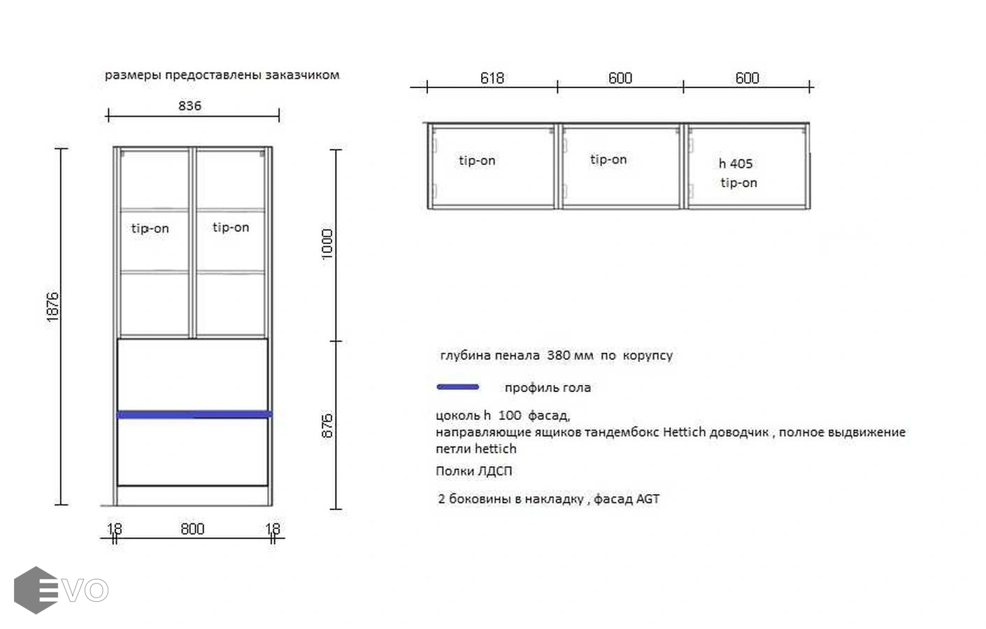 Пенал и закрытые полки для кухни РТ230208