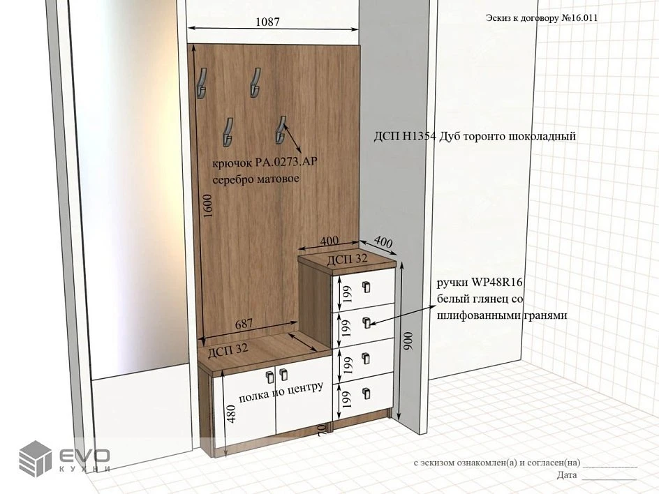 Прихожая c выдвижными ящиками и зеркалом 110 см