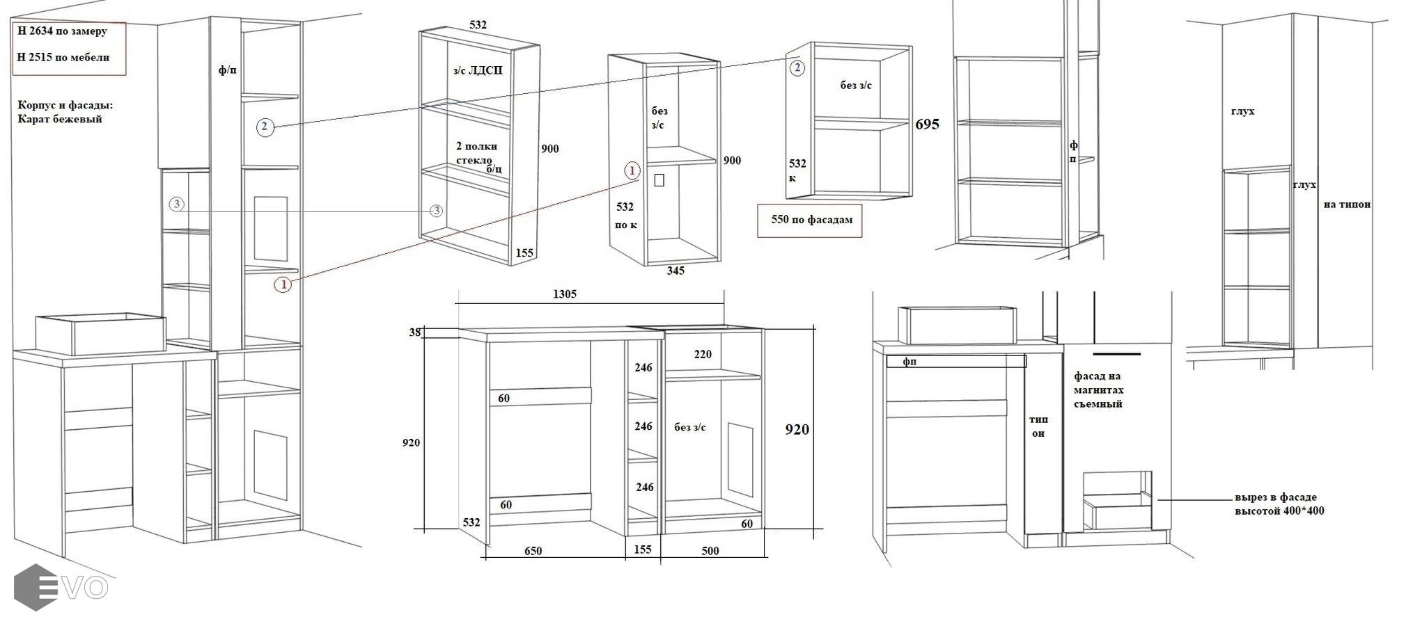 Кухни все изготавливаются по индивидуальному заказу. Мы подготовим дизайн-проект под любое помещение и конфигурацию. В зависимости от выбранных фасадов сможем изготовить нестандартные модули и размеры. Однако есть редкие исключения видов фасадов, по которым невозможны нестандарты, об этом вас предупредит дизайнер при выборе материалов для проекта.