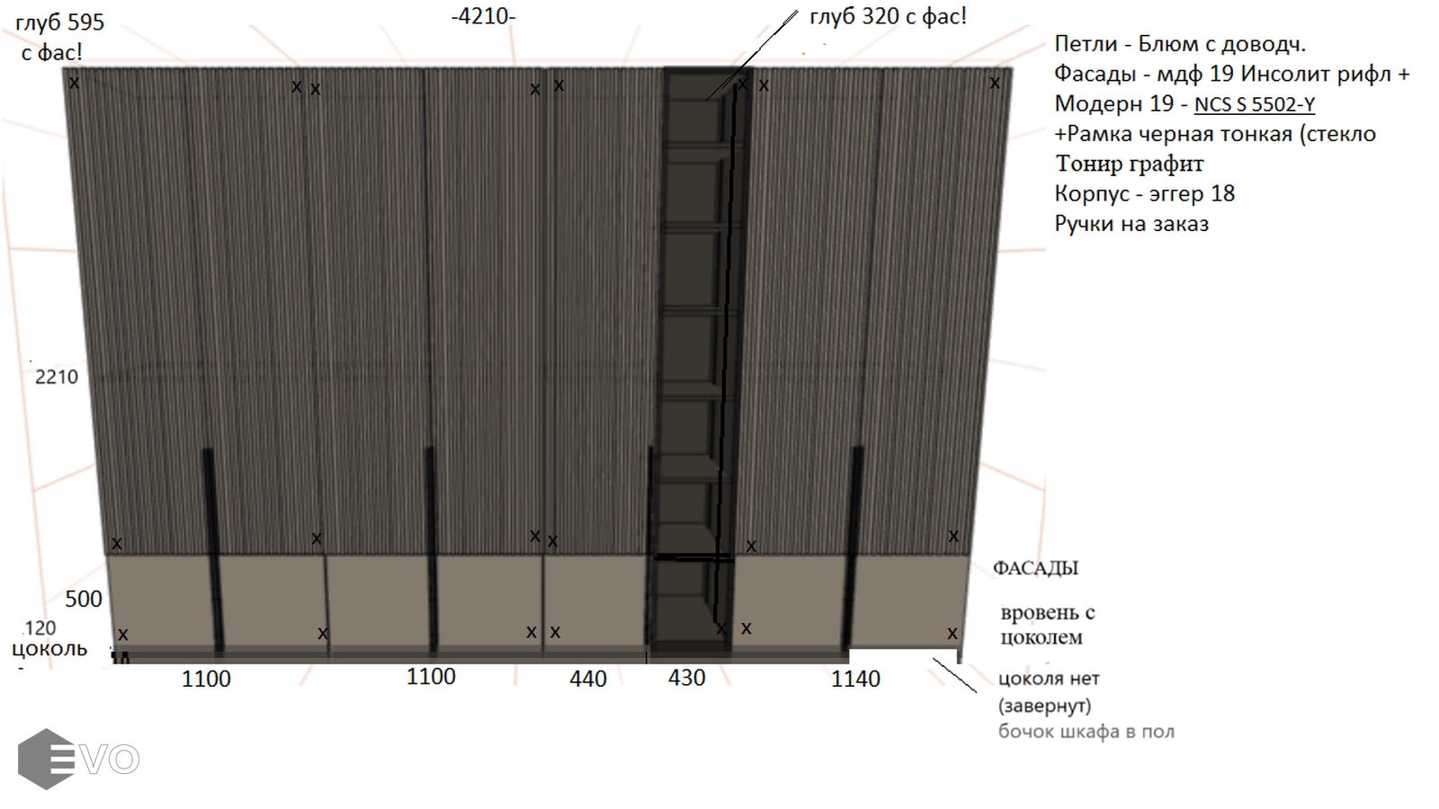 Шкаф для прихожей с рифлеными фасадами РБ241101