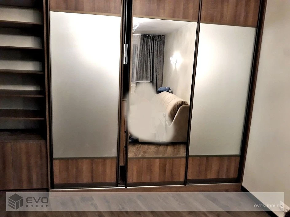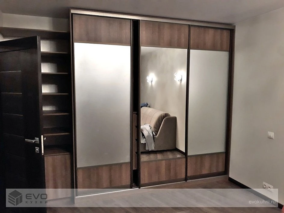 Шкаф-купе 3 двери с зеркальными вставками, темный