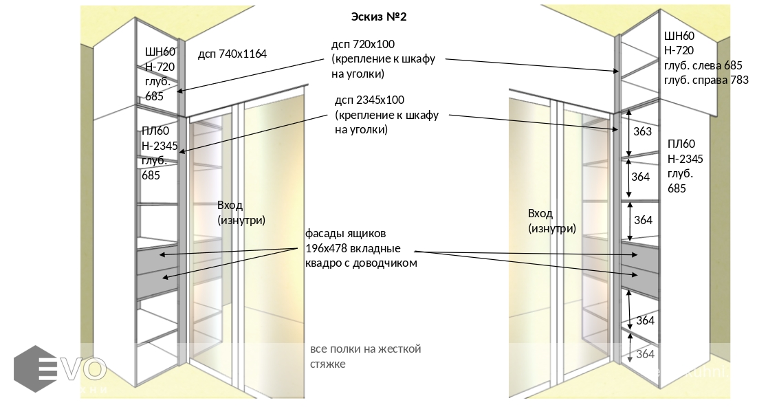 Кухни все изготавливаются по индивидуальному заказу. Мы подготовим дизайн-проект под любое помещение и конфигурацию. В зависимости от выбранных фасадов сможем изготовить нестандартные модули и размеры. Однако есть редкие исключения видов фасадов, по которым невозможны нестандарты, об этом вас предупредит дизайнер при выборе материалов для проекта.